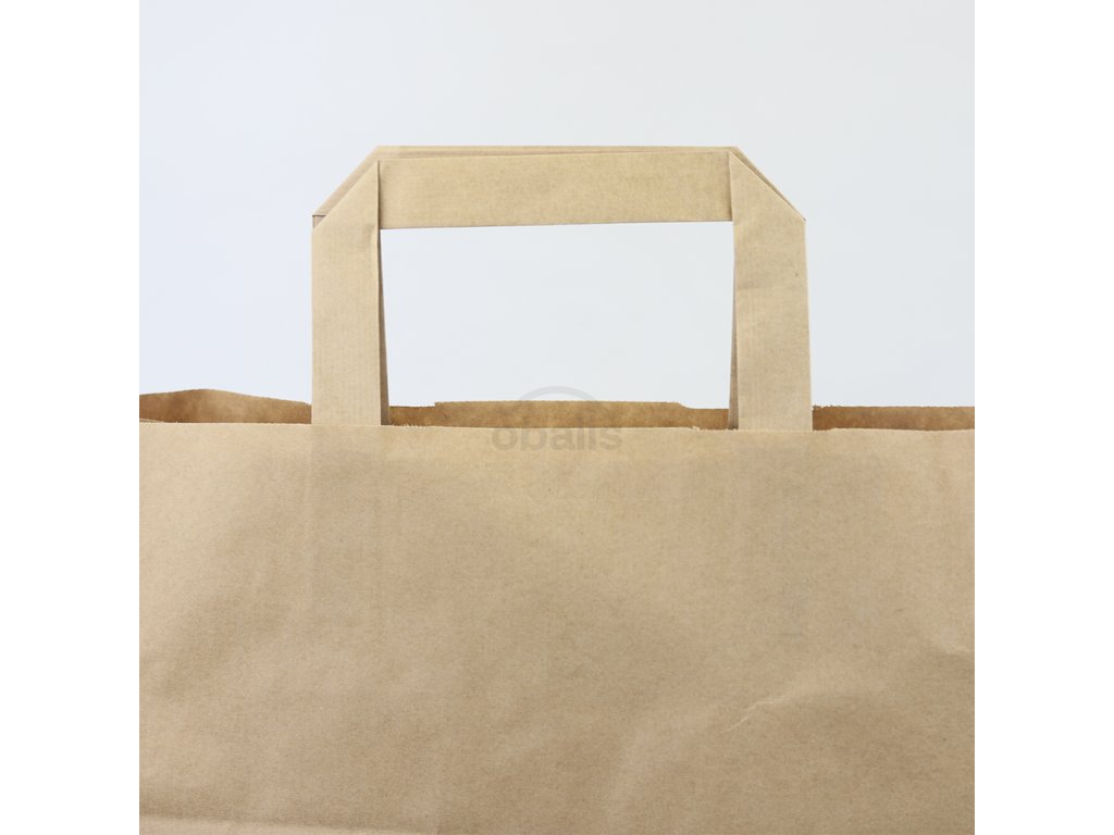 Papírová taška v hnědé barvě s plochým papírovým uchem.