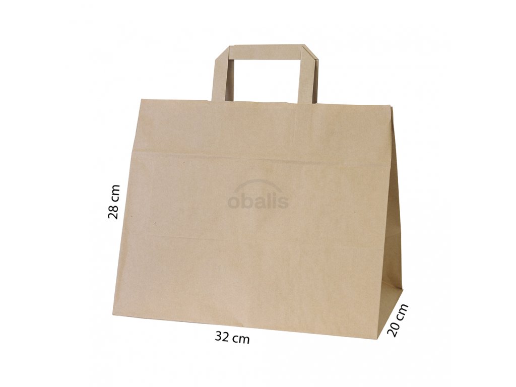 Papírová taška hnědá s plochým uchem 32 x 20 x 28 cm představuje ideální řešení pro restaurace, bistra či pekařství. Tento rozměr oceníte především k přenosu větších menu-boxů, hotových jídel nebo pekařských výrobků. Svým elegantním a jednoduchým designem, ale naleznou využití také v každé domácnosti, jako například dárkové tašky či tašky na běžný nákup.